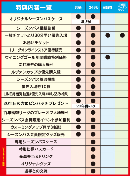 シーズン前に全試合、人気エリアの座席チケットを確保できます。