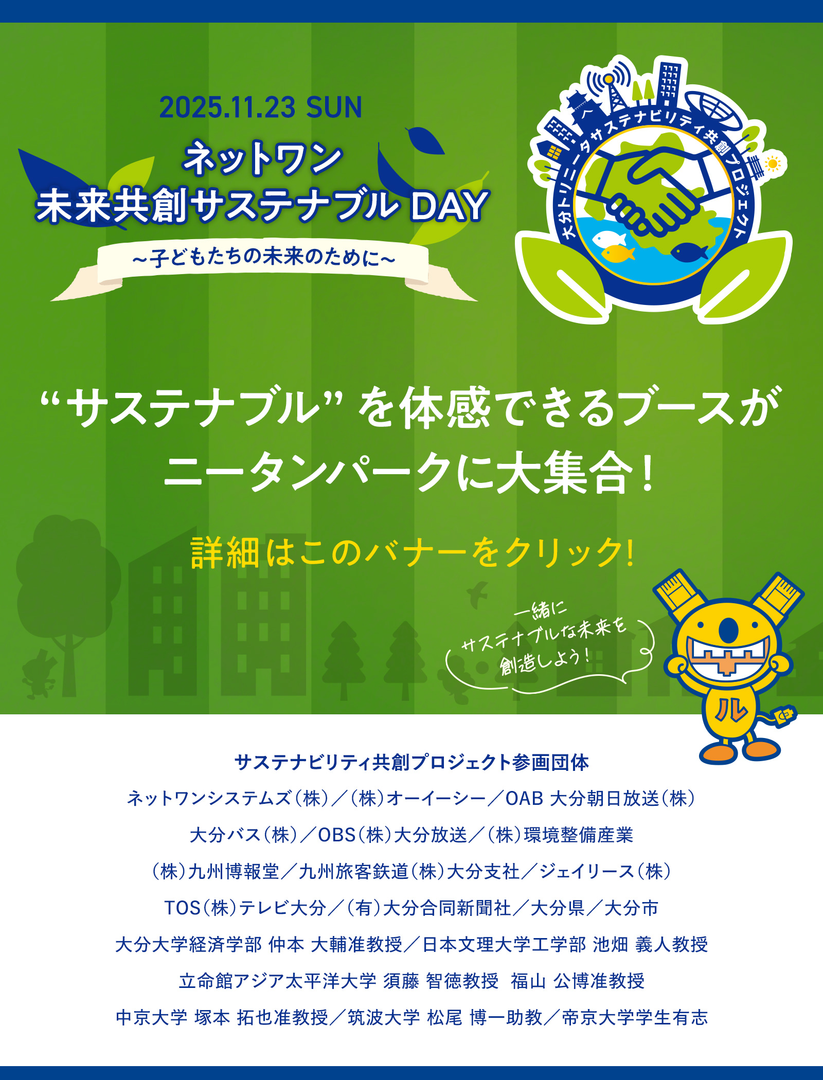 【イベント】11月23日ホーム最終戦 ネットワンシステムズ株式会社冠デー「未来共創サステナブルDAY〜子どもたちの未来のために〜」開催のお知らせ