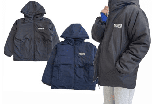 シルバー刺繍のオリジナルロゴに注目!(ネイビー・ブラック)中綿フードジャケット