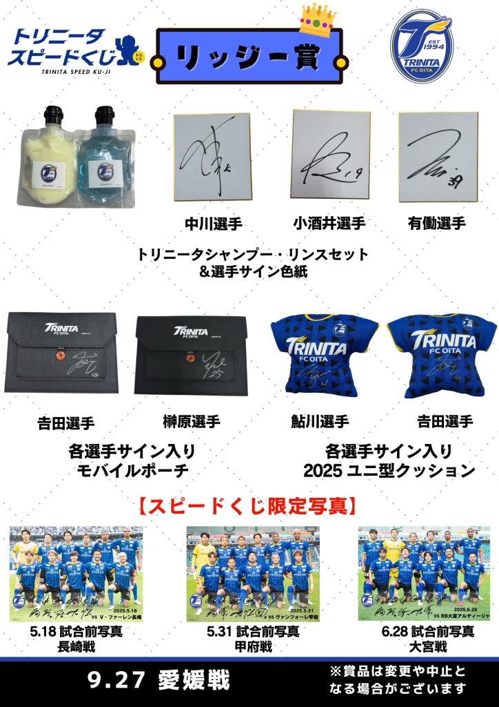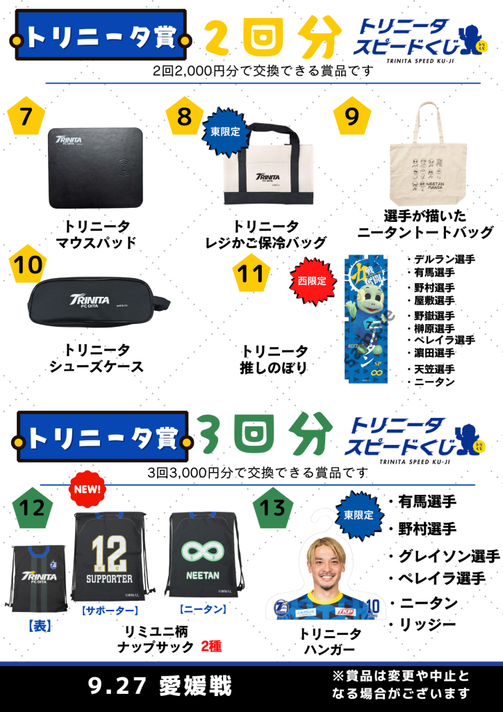 【トリニータスピードくじ】9/27(土)愛媛FC戦情報