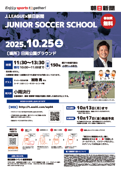 【スクール】朝日新聞×大分トリニータジュニアサッカースクール開催のお知らせ
