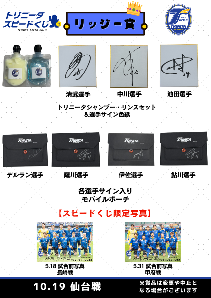 今節も2025トリニータマフラーキーホルダーの不良品の交換をスピードくじパークにて行います。