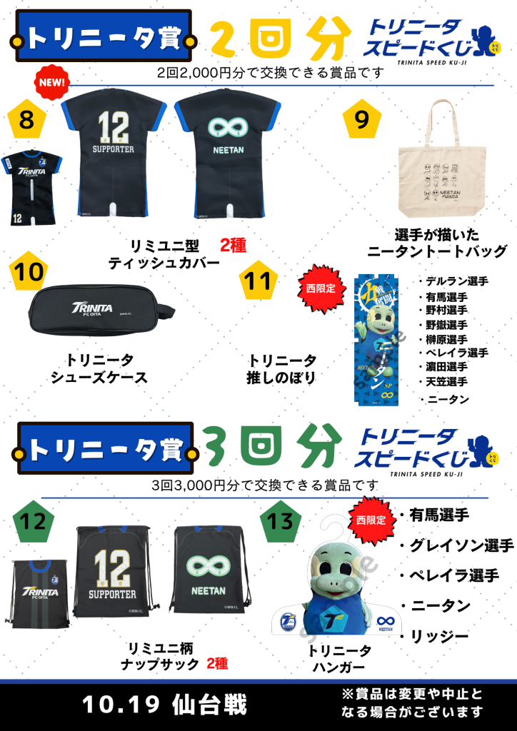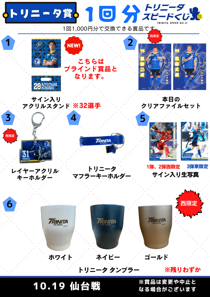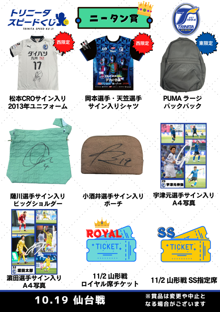 【トリニータスピードくじ】10/19(日)ベガルタ仙台戦情報