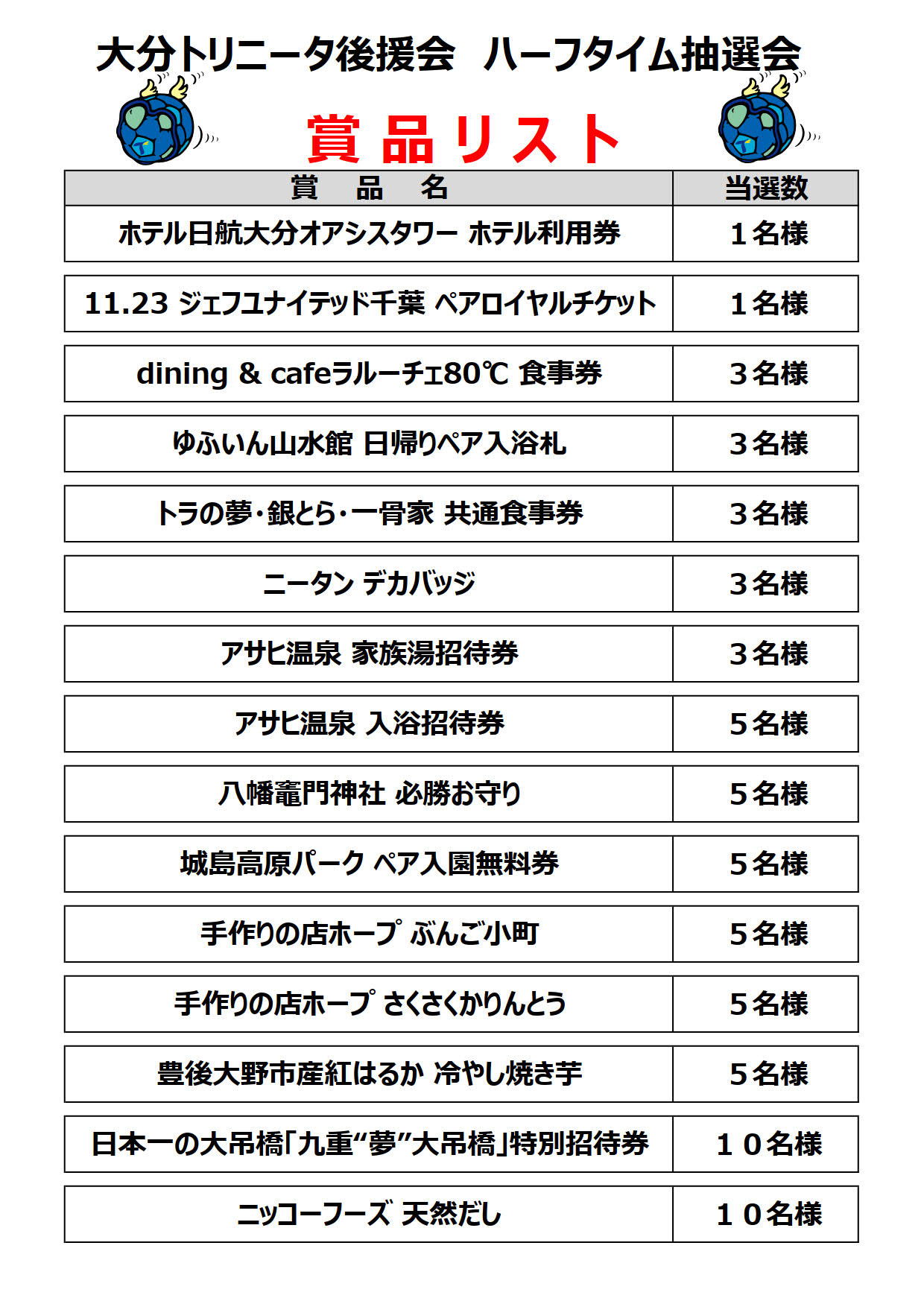 賞品の引換は試合終了後10分以内とさせていただきます。