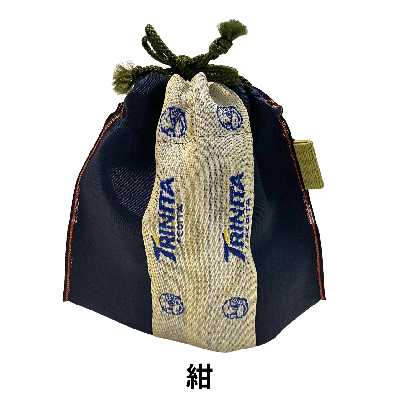 大分トリニータ 畳巾着は、巾着本体に畳の縁を使用し、畳のタグがかわいいアクセントになった巾着です。使う度に柔らかく風合いの出る素材は、デニムのように育てていく楽しみも。