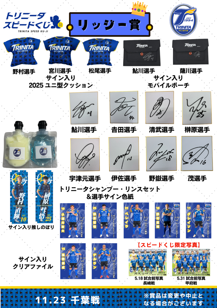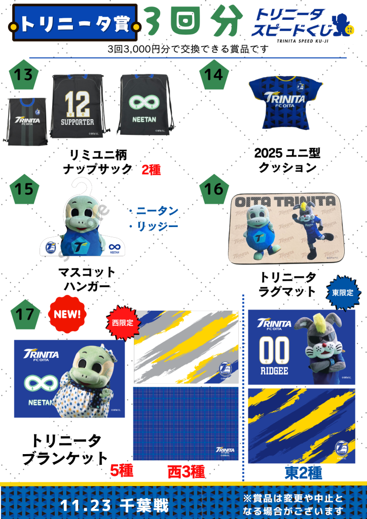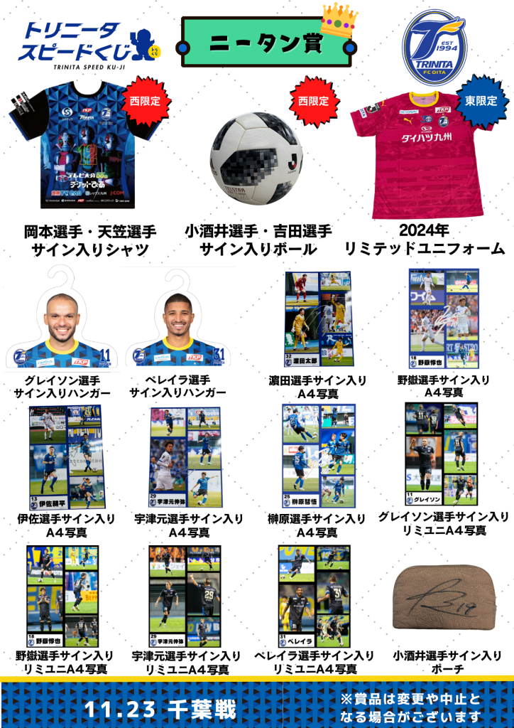 11月23日(日祝)に行われる2025明治安田J2リーグ第37節ジェフユナイテッド千葉戦のトリニータスピードくじ情報をお知らせします。