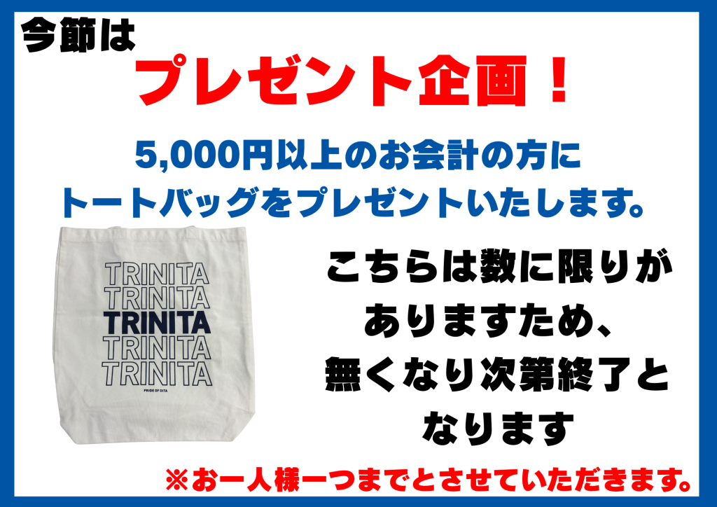 スピードくじで1会計5,000円以上のお客様にトートバッグをプレゼントいたします。