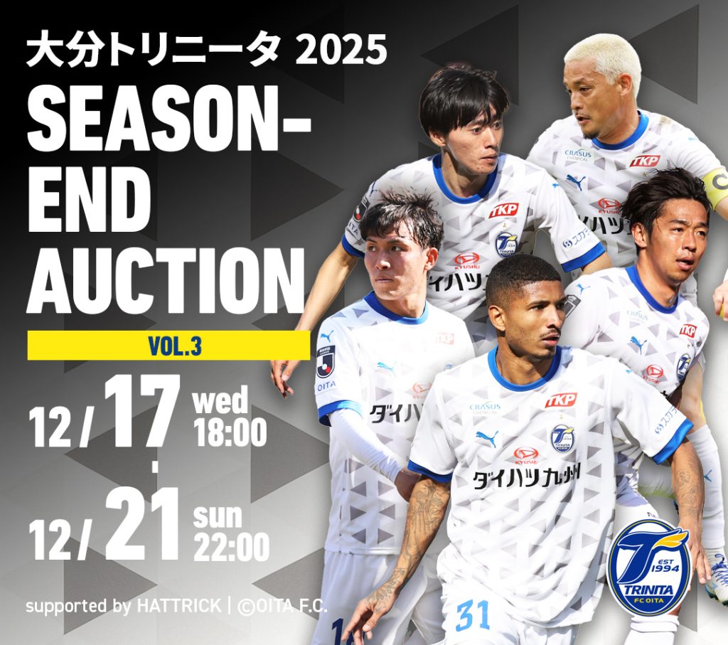 12月3日(水)~12月21日(日)の期間、【2025シーズンエンドオークション】をスポーツ専門公式オークションサイト「HATTRICK」にて実施することが決定いたしましたので下記の通りお知らせいたします。