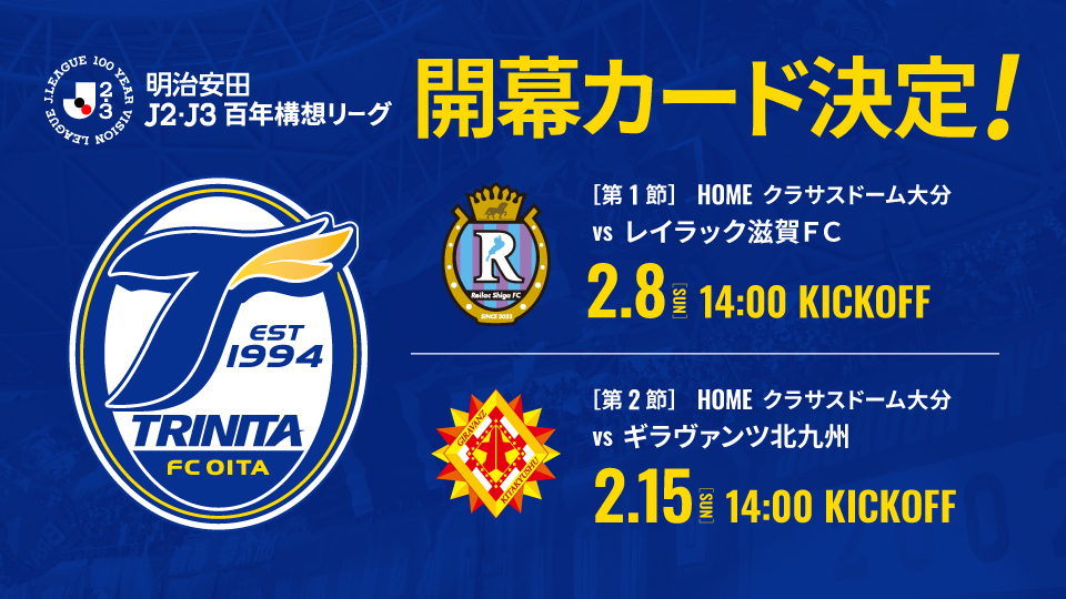 【トップチーム】明治安田J2・J3百年構想リーグ WEST-Bグループ 第1節・第2節 日程発表について 2025/12/26 本日、Jリーグより明治安田J2・J3百年構想リーグ WEST-Bグループ第1節・第2節の日程が発表されましたので、下記の通りお知らせいたします。