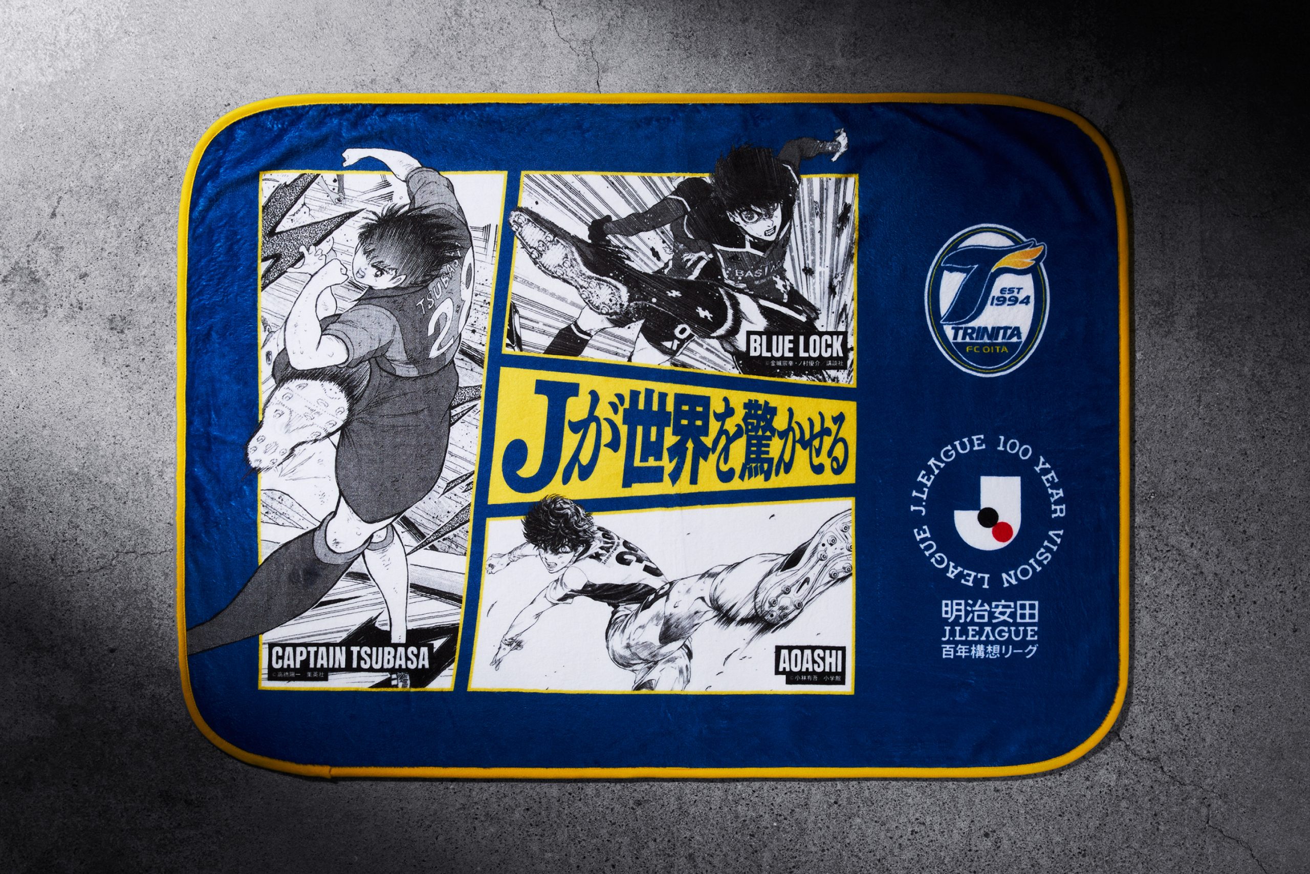 本企画は、シーズン移行に際して開催される特別な大会である「明治安田Jリーグ百年構想リーグ」を記念して実施されるものです。ブランケットのデザインには、日本が世界に誇るサッカー漫画「キャプテン翼」をはじめ、近年国内外で絶大な人気を誇る「ブルーロック」「アオアシ」の3つの作品との史上初のトリプルコラボレーションが実現しました。シーズン移行という大きな転換点を経て、Jリーグが今後さらに結果を出し、世界を驚かせるという意思を、3作品の主人公が放つ力強いシュートと重ね合わせ、メッセージとして発信していきます。