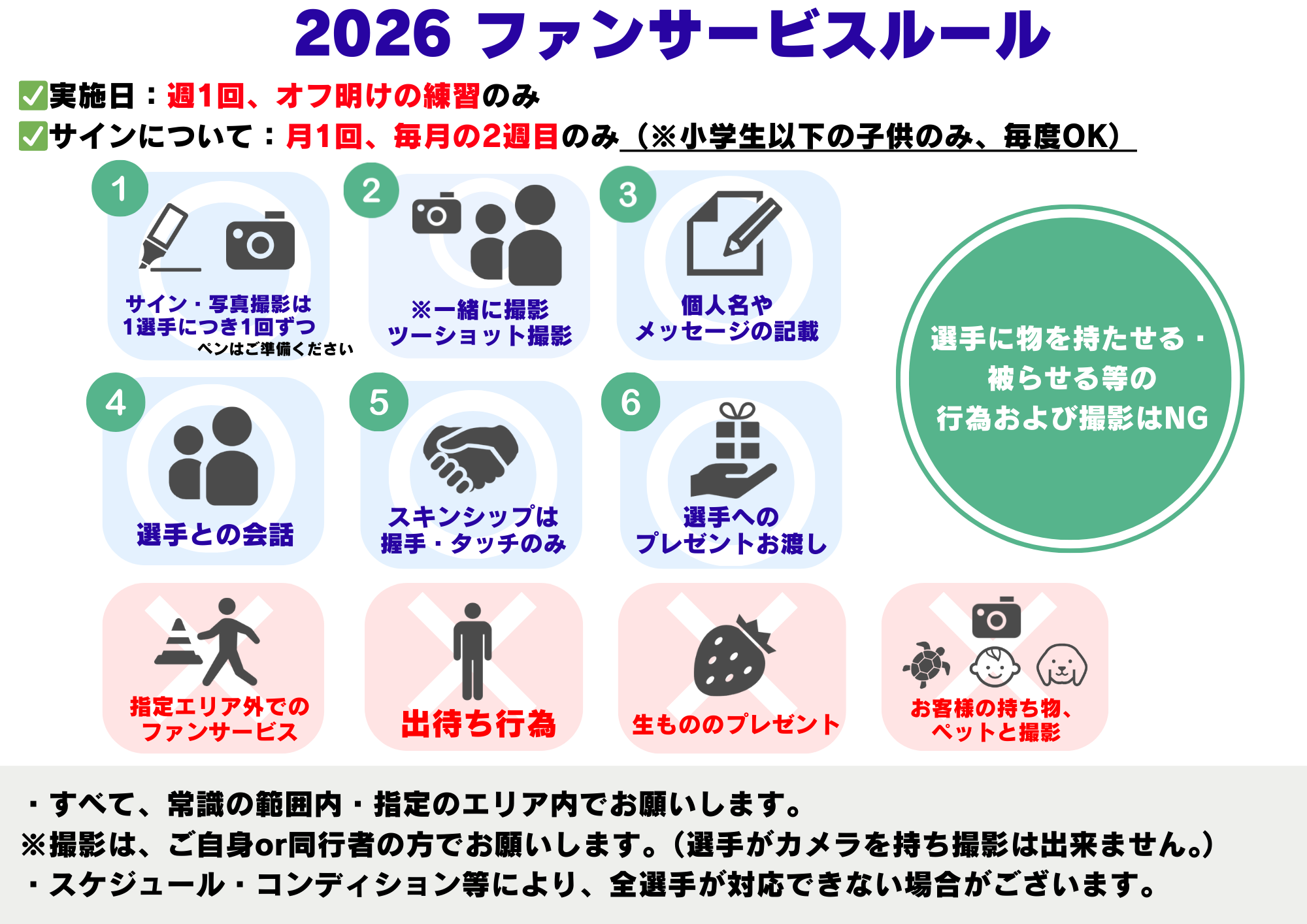 ③ツーショット写真撮影は可能ですが、撮影はご本人or同行者の方でお願いいたします。※選手がカメラを持って撮影することは出来ません。