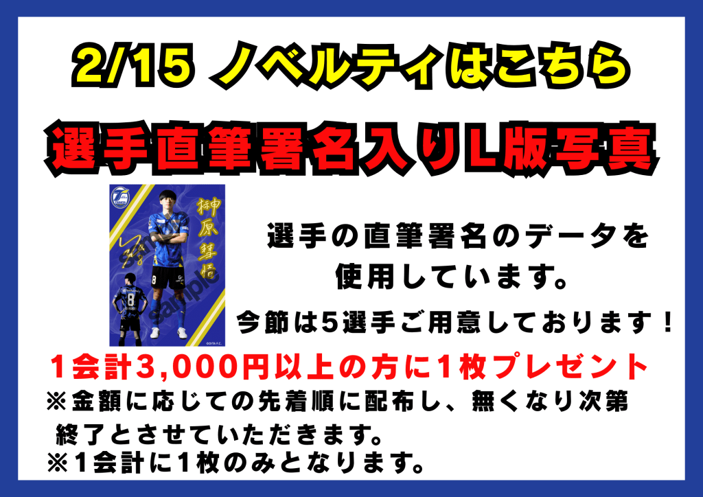 開幕戦は1会計3,000円以上の方に直筆署名データ入り写真をプレゼント!