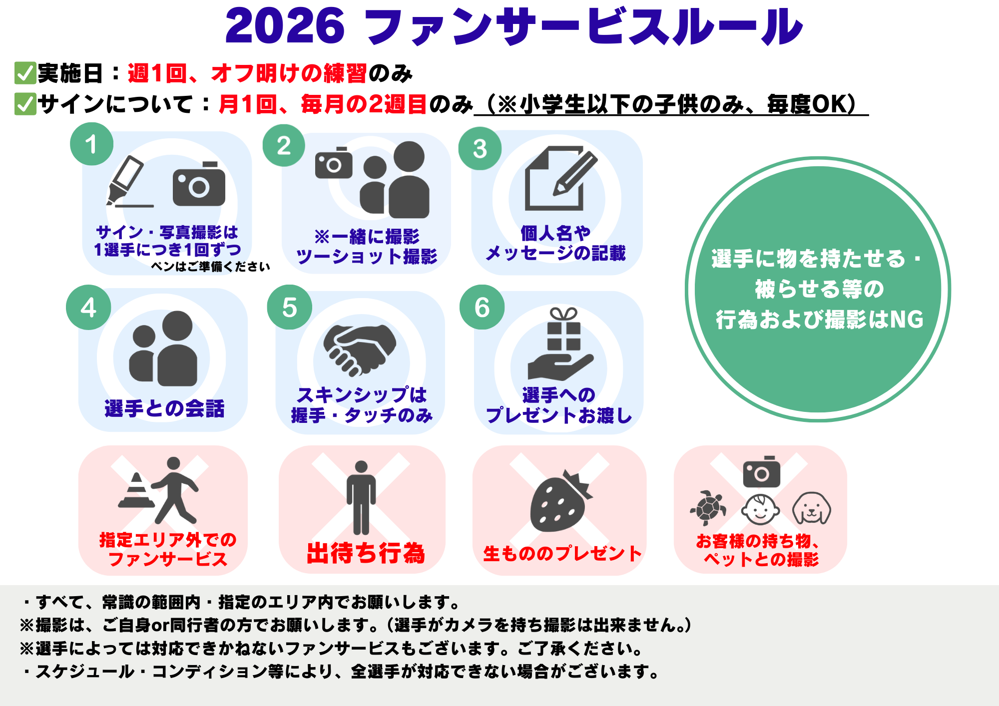 ・選手にものを持たせたり・かぶらせたり等の行為および撮影はNGとさせて頂きます。