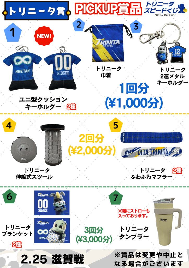 2月25日(水)に行われる明治安田百年構想リーグ第1節レイラック滋賀FC戦のトリニータスピードくじ情報をお知らせします。