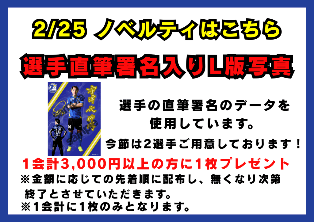 今節は1会計3,000円以上の方に直筆署名データ入り写真をプレゼント!