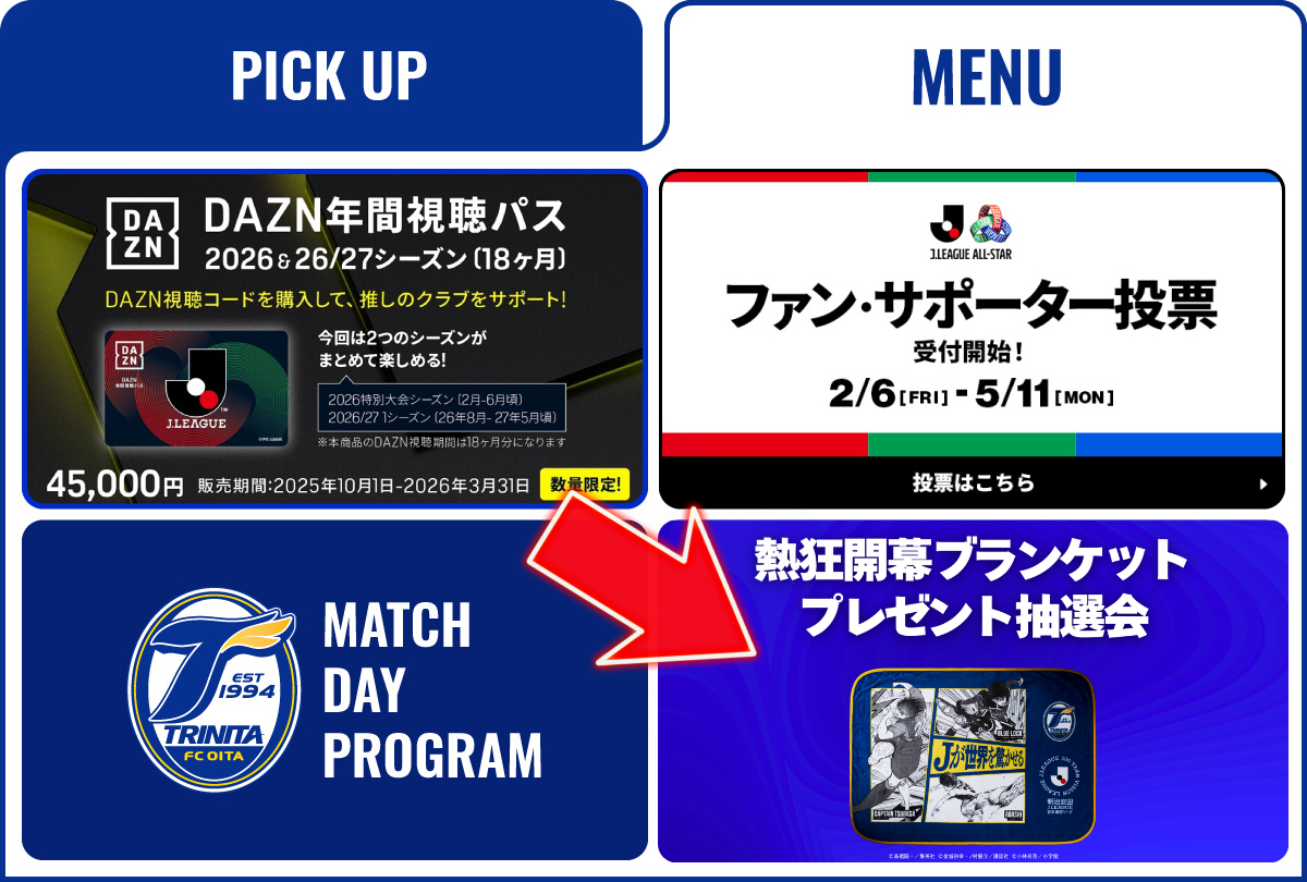 ②大分トリニータ公式LINEアカウントの「MENU」から、「熱狂開幕ブランケットプレゼント抽選会」にアクセス