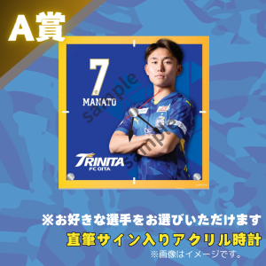 今回は上位賞に「選手直筆サイン入りアクリル時計」や「アクリルキーホルダー」などレアアイテムが多数登場!