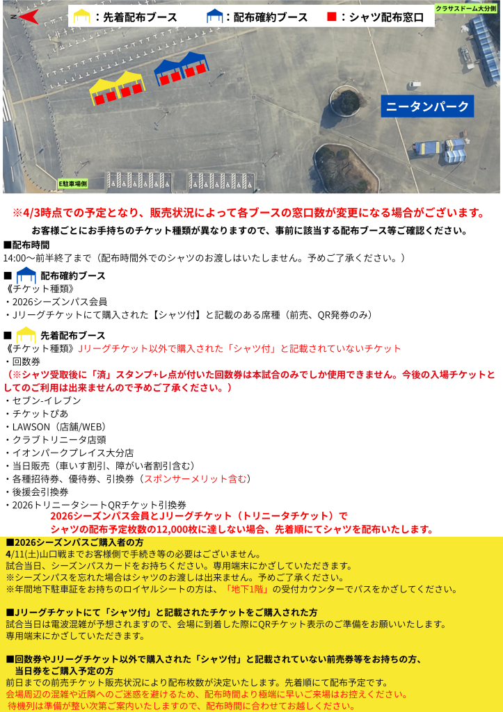 ・2026トリニータシートQRチケット引換券:事前にご自身でQRチケットを取得後、先着配布ブースにお並びください。