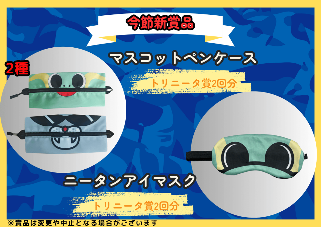 選手やニータンなどの様々な賞品を取り揃えております!ぜひ、試合の前後でお楽しみください!