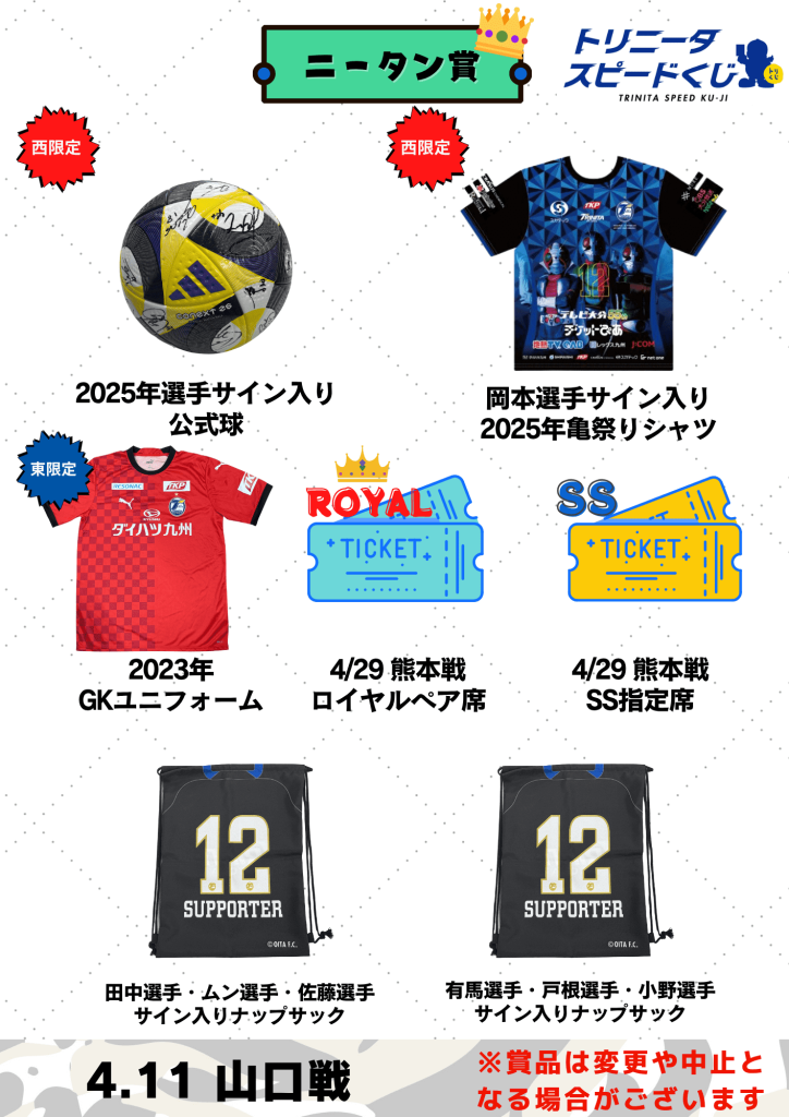 【トリニータスピードくじ】4/11(土)レノファ山口FC戦情報