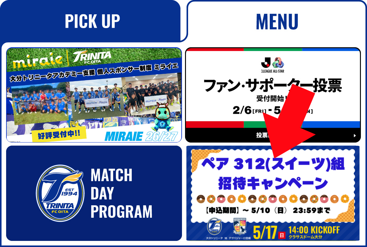 5/17(日)テゲバジャーロ宮崎戦にて開催される「明治安田presents スイーツフェス」を記念して、「ペア 312(スイーツ)組招待キャンペーン」を下記の通り実施いたします。