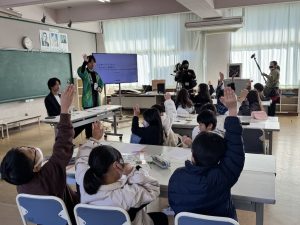 グループワーク後には、生徒さんたちに「気候アクションをやってみたい人」「友達やおうちの人に伝えたいと思った人」と聞いたところ、出席者全員が挙手してくれました。授業の間も、積極的に答えてくれたり、自分なりの気候アクションを発表してくれるなど大いに盛り上がりました。