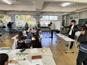 大分では初の授業となるため、松本アンバサダーをはじめスタッフ一同、緊張感を持って3年生の生徒さんたちを待ちました。「こんにちは!」と元気な挨拶の声とともに生徒さんたちが多目的ホールに入室されました。