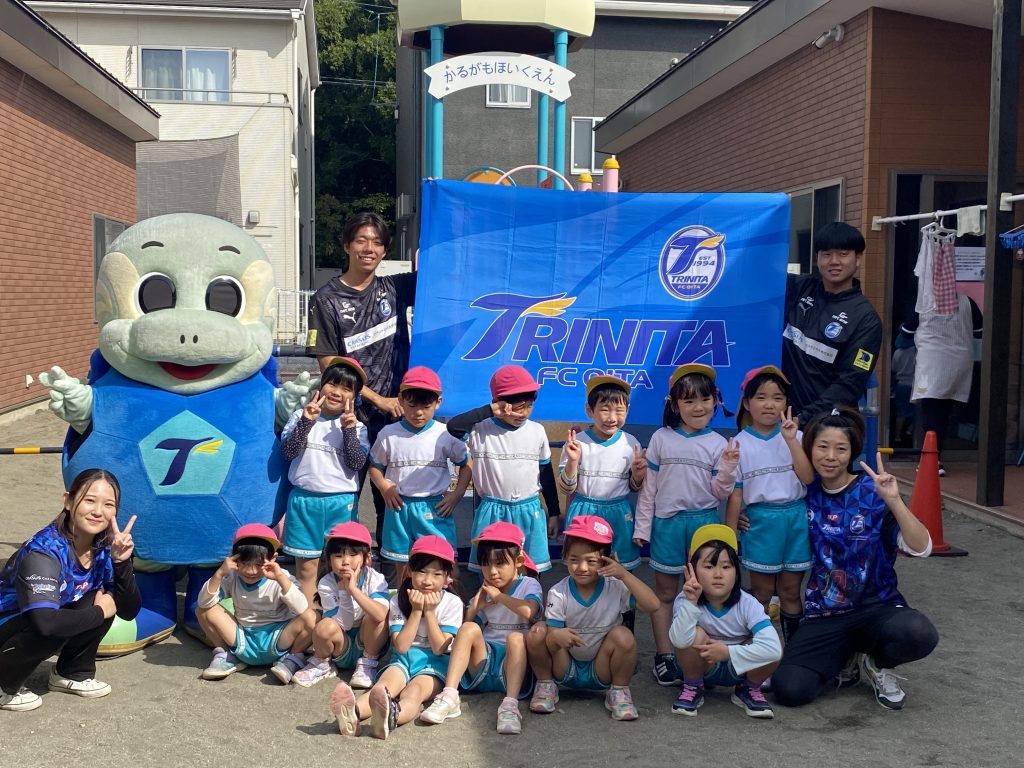 10/30(木)にかるがもこども園を訪問し、5歳児15名を対象にサッカー交流事業を行いました。