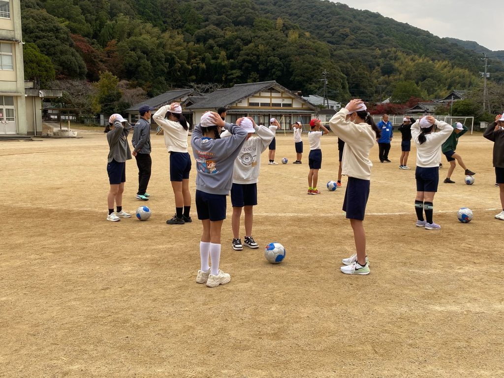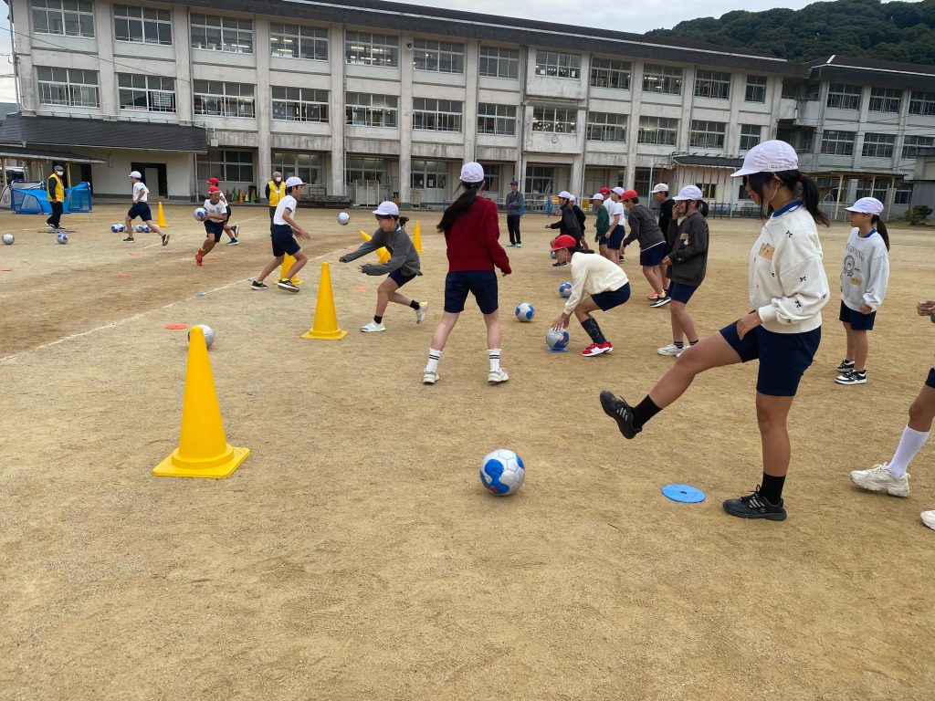 11月25日(火)に佐伯市立佐伯小学校を訪問し、6年生46名を対象にサッカー教室を行いました。