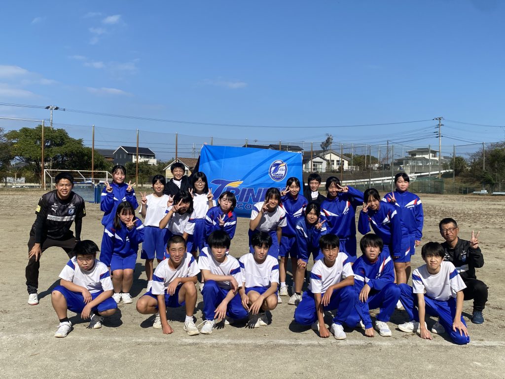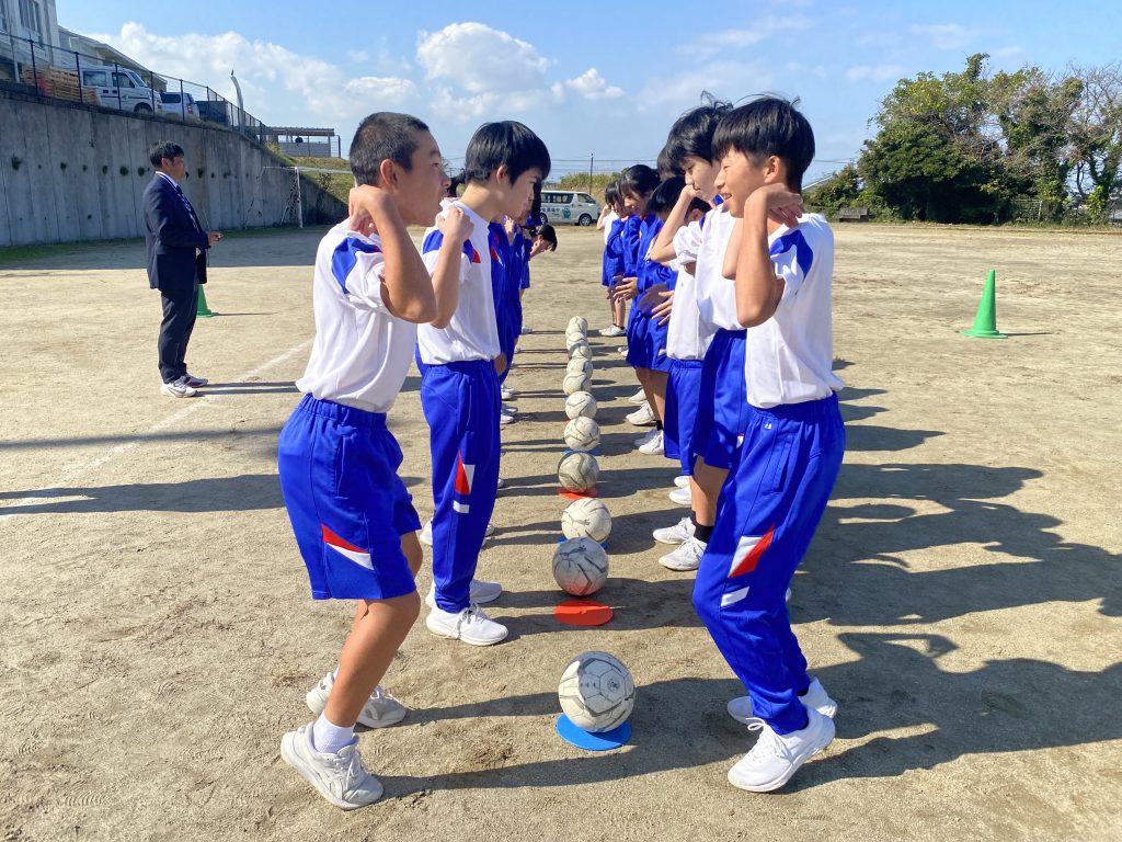 11月14日(金)に大分市立神崎中学校を訪問し、中学1年生~中学3年生合計46名を対象にサッカー教室を行いました。