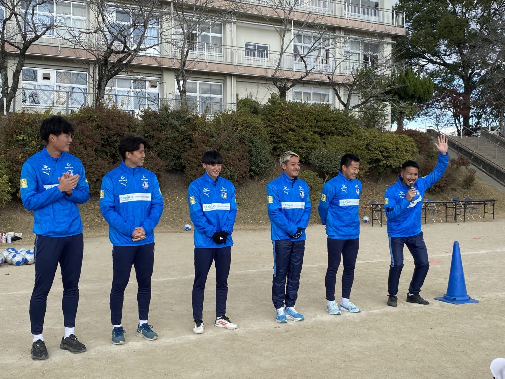 今回の学校訪問には、大分トリニータのトップチームに所属している有馬選手・野村選手・伊佐選手・榊原選手・松尾選手・古野選手が参加しての実施となりました。