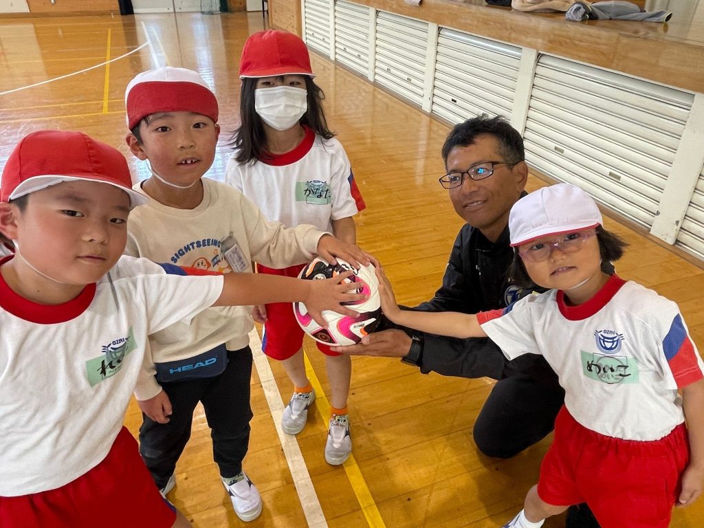 体育館に入ると、児童たちは大きな声で「おはようございます!」と挨拶してくれ「今日のサッカーを楽しみにしていた!」と笑顔で話す姿も見られました。