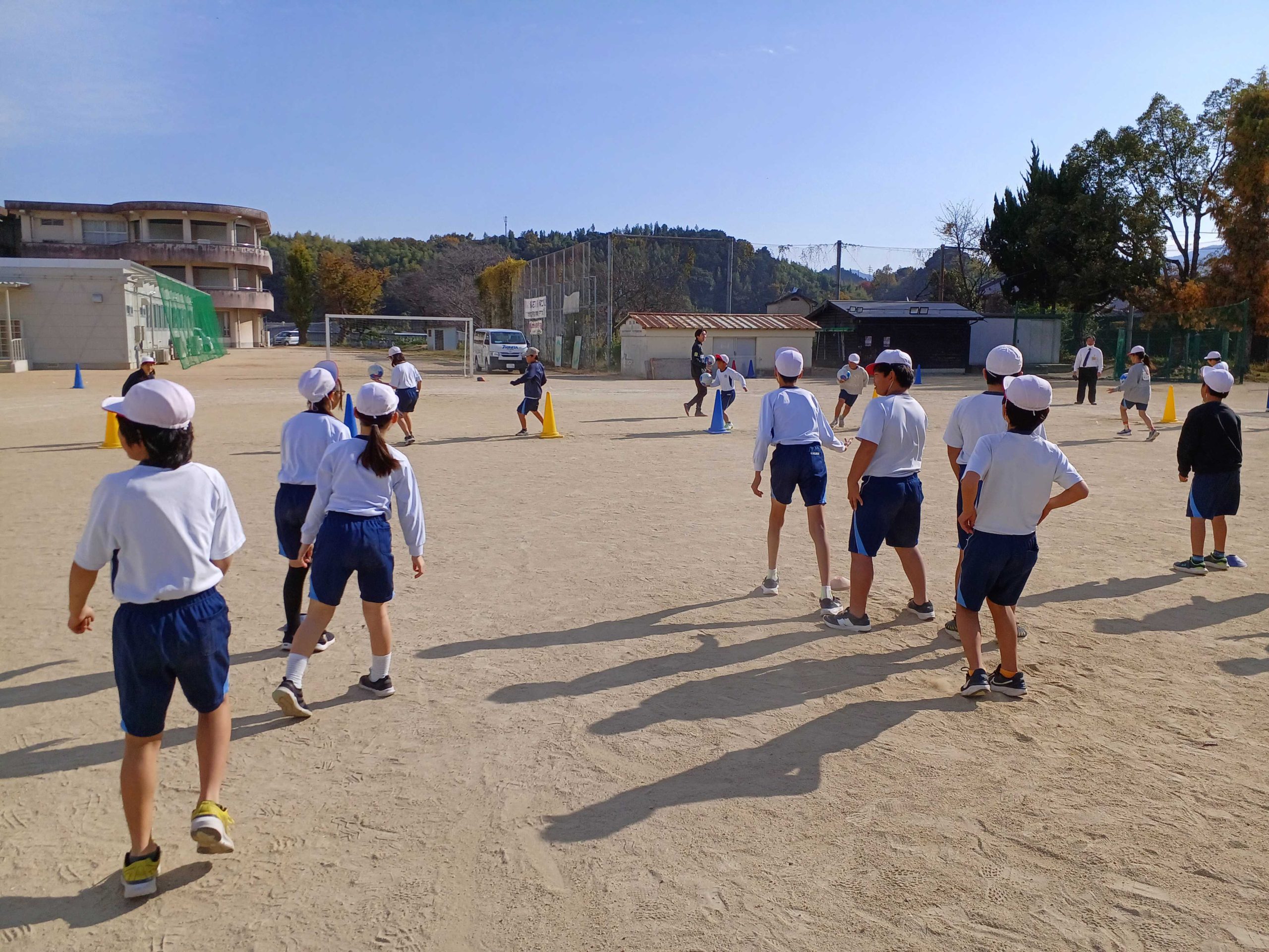 チームに分かれてドリブルでコーンを回る対決をしました。児童たちはコーチのアドバイスを聞いて真剣に挑戦していました。ドリブルしている友達を応援する姿がとても印象的でした。