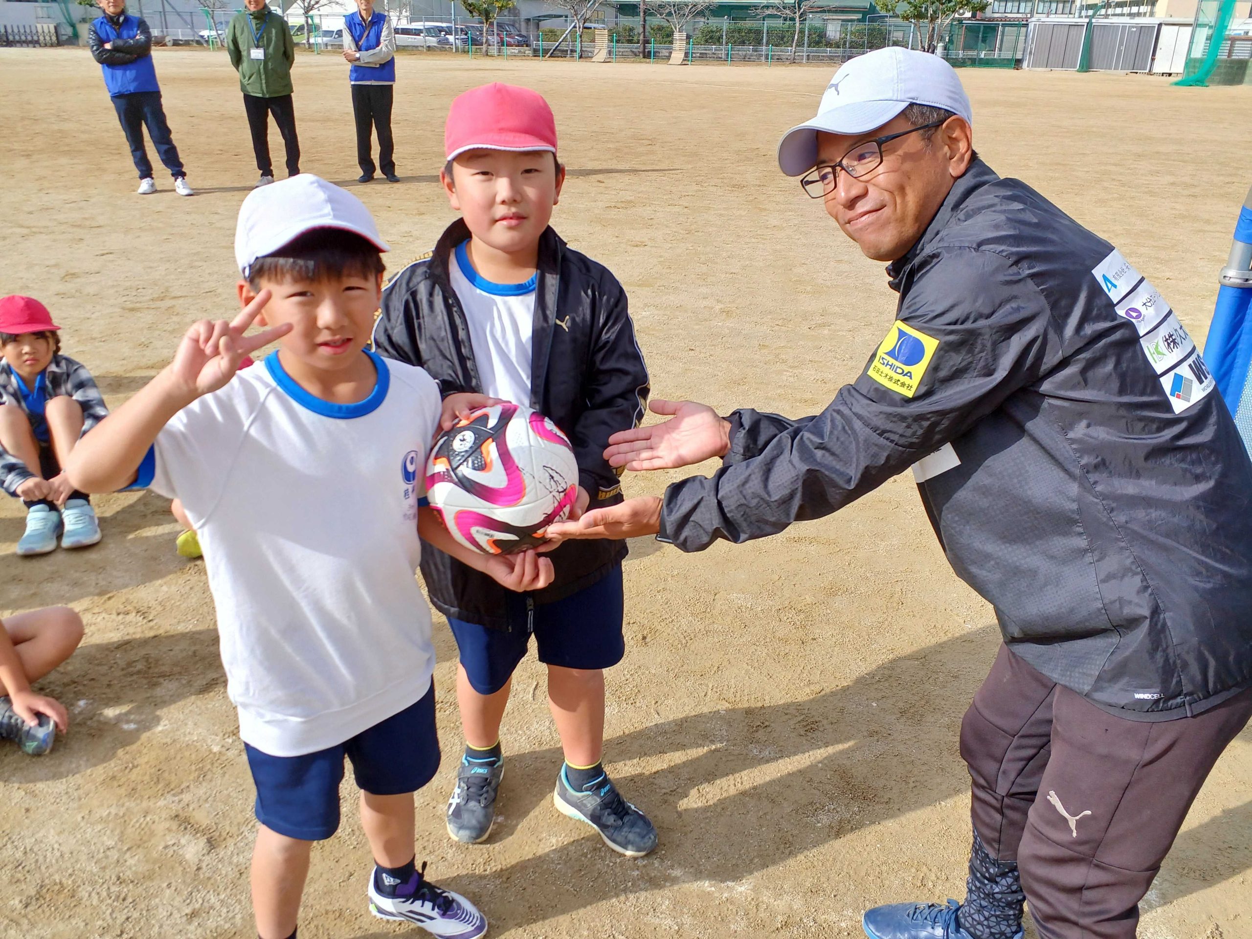 最後に自由帳・公式球・チケットをプレゼントすると、子どもたちは嬉しそうにしていました。