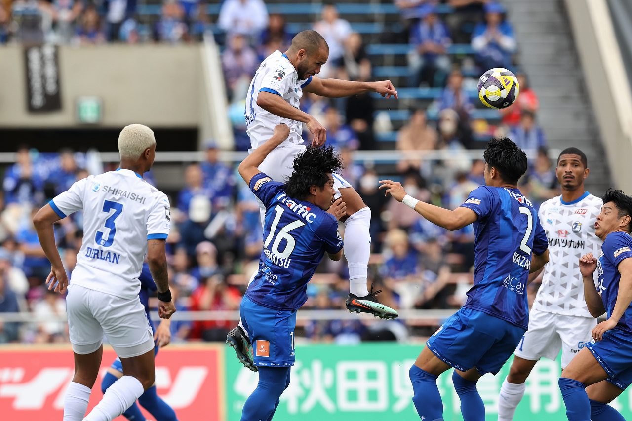 秋田の守備も堅いが大分も素早く帰陣して、互いに譲らない戦いぶり。それぞれのやり方で相手の堅牢な牙城に迫る両軍は貪欲にセットプレーでの得点も視野に入れる。ボールを動かしてゴールに迫る大分はCKのチャンスを多く築き、秋田はFKやロングスローからチャンスを窺った。