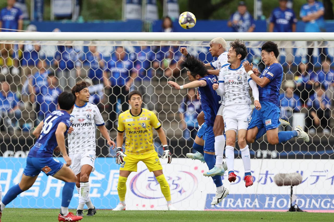 71分には三竿雄斗のFKのこぼれ球を榊原が狙って岡崎にブロックされた。その直後の伊佐のシュートは梶谷に、73分の茂のクロスから放ったグレイソンのバイシクルシュートは土井に掻き出される。