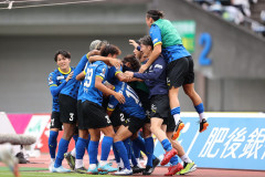 一方の熊本はビハインドになってから焦りが出たのか、ひとつひとつのプレーが雑な印象に。90+1分には藤井と大本を竹本雄飛と飯星明良に2枚替えするが、追撃は精度不足で、大分に落ち着いて対応される。7分のアディショナルタイムを乗り切って、榊原の脳震盪疑いによる交代枠+1はともに残したまま、残留争い中のダービーは大分の勝利で幕を下ろした。勝点3を積んだ大分は藤枝を抜いて15位に浮上。富山との直接対決を制して18位となった山口との勝点差を9に広げた。
