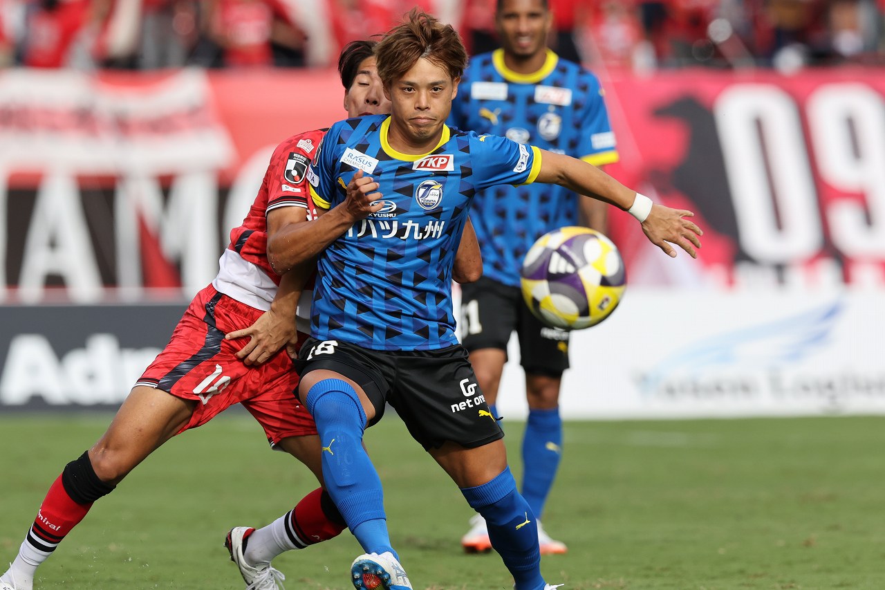 35分、三竿雄斗の右CKはデザインに忠実にファーの伊佐に渡ったが、その折り返しがデルランに深く入り、左腿で押し込もうとしたが半代と佐藤史騎に掻き出される。その1分後には熊本も絶好機。右に流れていた藤井のアーリークロスをゴール前で胸トラップした塩浜遼がすかさず右足で狙ったが、弾道はわずかに上に逸れた。45分には天笠泰輝のスルーパスに抜け出した池田廉が自ら持ち込んでシュートを放ち、枠の右へ。45+3分の榊原彗悟のFKは枠の左へ。