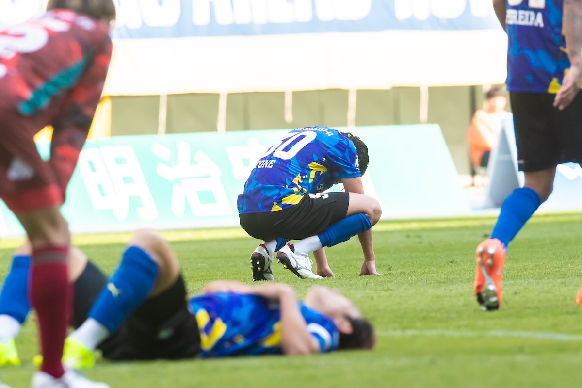 仕切り直しを誓って入った後半。47分の宇津元のFKに合わせた櫻井のシュートは枠の左へ。52分には3失点目。高木大輔のロングスローはクリアしたが、それを拾った高木がもう一度クロスを入れて堀内颯人が折り返し、大分の選手たちがボールウォッチャーになったところで上野瑶介に悠々と仕留められた。