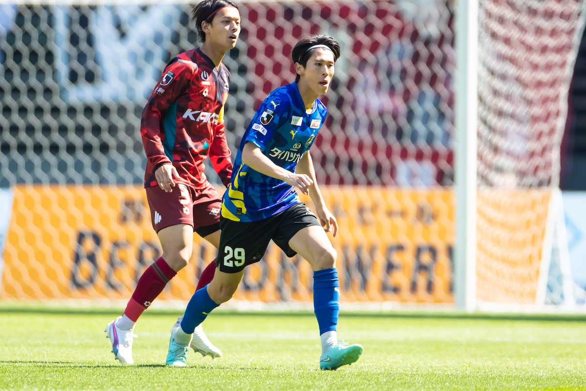 だが、13分にはいい形から先制に成功する。山口卓己の展開を受けた宇津元伸弥が相手と競り合いながら収め、それを受けた中川寛斗がクロス。ニアで櫻井が潰れ、そのこぼれ球に詰めた有働夢叶がすかさず押し込んだ。