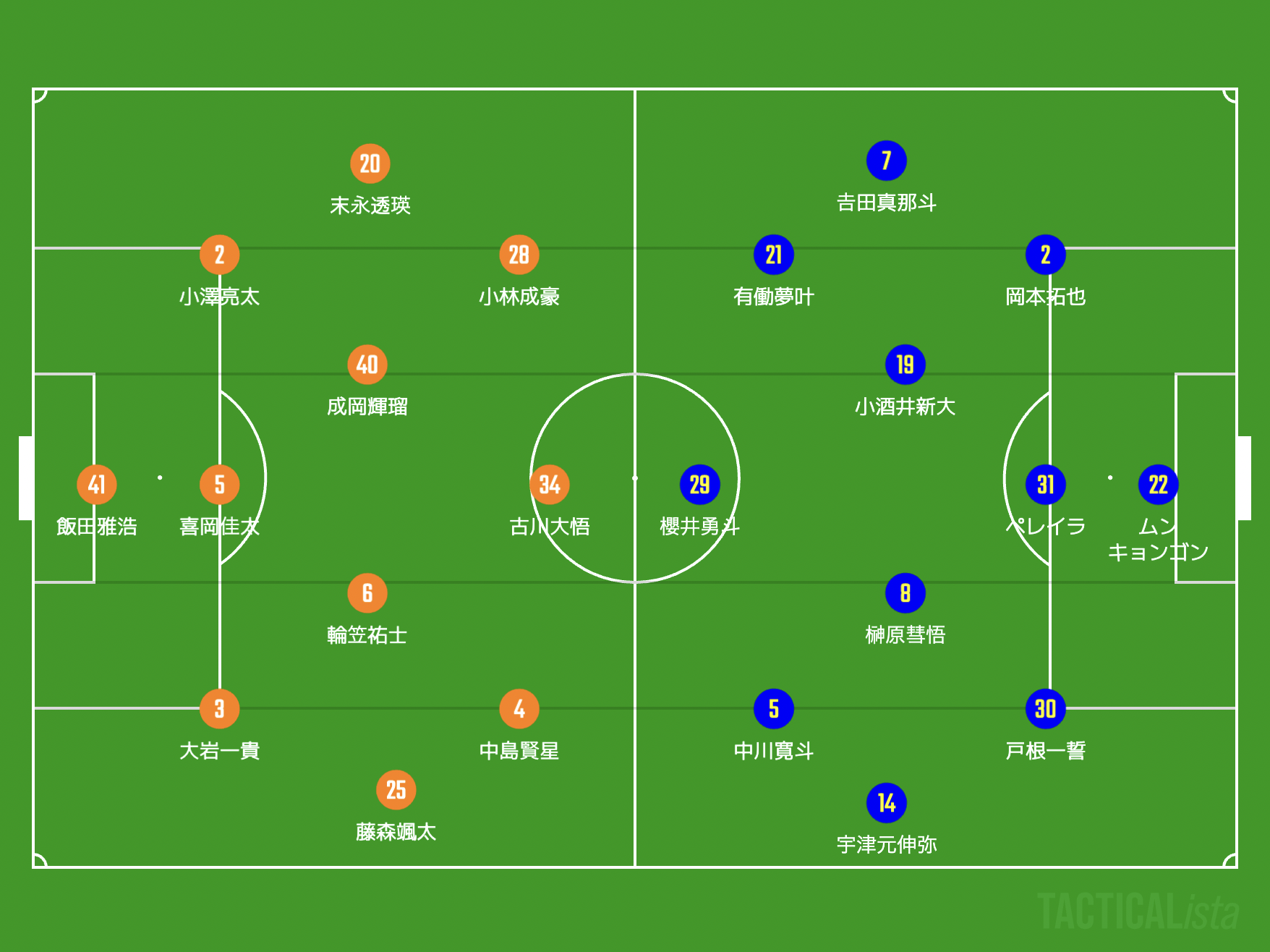 多くの要修正点が浮き彫りになった前半を終え、四方田修平監督はハーフタイムに3枚替えを敢行。櫻井を伊佐耕平に、有働夢叶を木許太賀に、中川寛斗を木本真翔にと1トップ2シャドーをそっくり入れ替えて後半をスタートした。