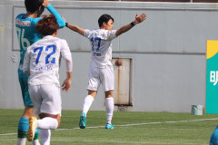 31分、山口のタックルから奪ったボールを木許が運んでキムへと託す。エリア内へと進入したところで後ろから追ってきた長澤に押され、出てきた松原颯汰との間に挟まれるようなかたちになって押さえられた。だが、上原直人主審の笛は鳴らず。PKではないかと抗議した四方田修平監督にイエローカードが提示されることになった。