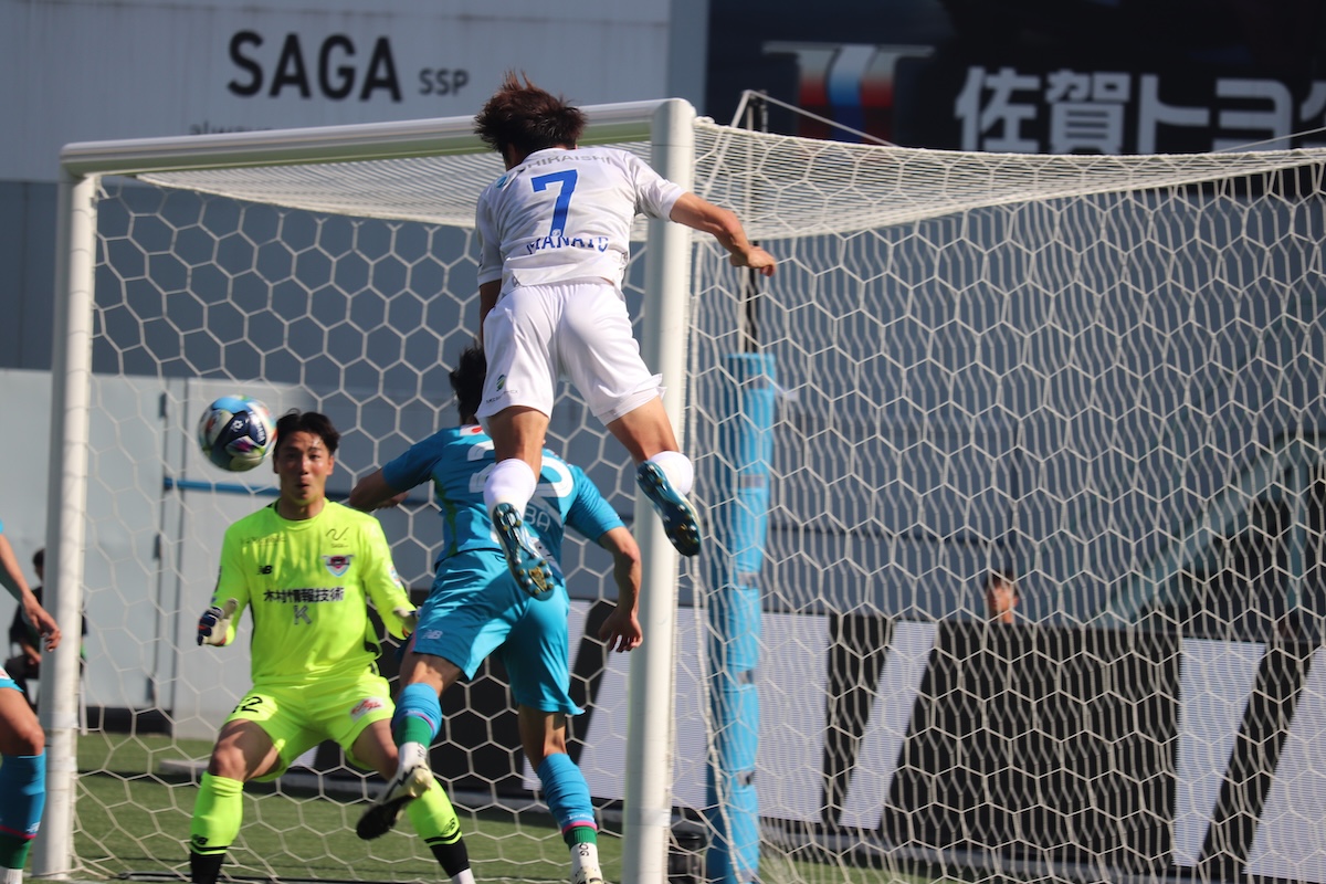 16分にはペレイラの鈴木大馳への対応がファウル判定となりFKを与えるが、西澤のキックからの磯谷駿のヘディングシュートはムンが危なげなくキャッチ。18分には相手のミスを逃さずボールを収めた木許が攻め上がり、サンドしてくる相手の間隙を突いて𠮷田真那斗に落とすと右CKを獲得した。そのデザインCKは得点には繋がらなかったが、榊原が2度シュートを放つなど、迫力を持ってゴールに迫るシーンとなる。